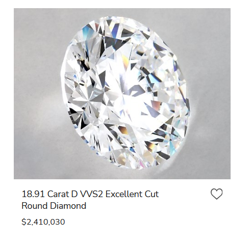 The price ranges are vast based on the James Allen diamond search tool but just how far does it go up in price. As of early April 2023 James Allen featured two diamonds in their inventory that were in excess of $2 million. These are: