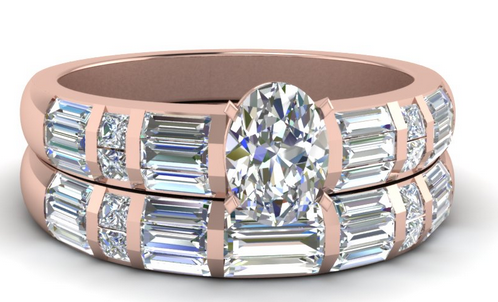 Using baguette style accents creates a symmetry and a large table. Those in the know will of course be aware that the table size is vital for allowing the optimum amount of light into the gems to get the best brilliance from the gems.