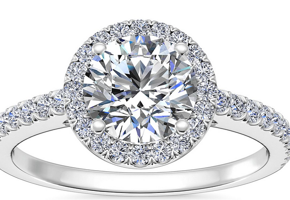 Imagine combining a Bezel setting with a Pavé setting and you may be able to guess what a halo setting will look like. You have the central diamond encircled by a ring like you do with the Bezel but rather than being a plain metal ring it is actually encrusted with accent diamonds creating a very impressive look.
